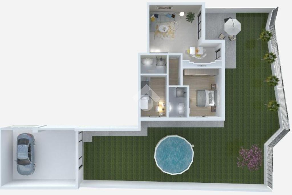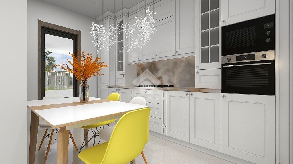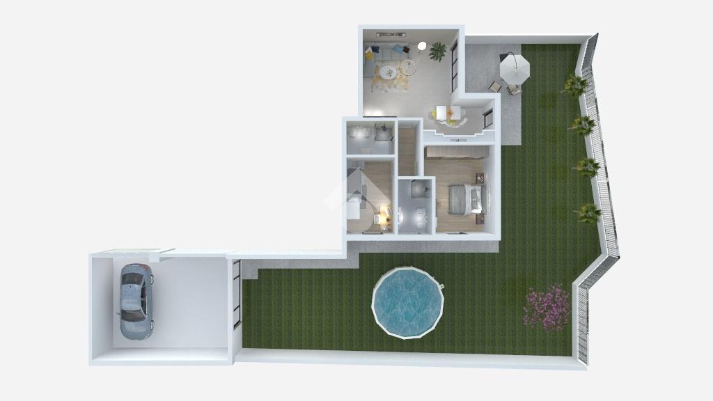 Ampio soggiorno, cucina a vista parzialmente separata dalla zona living (possibilità di creazione ambiente totalmente separato), ampio giardino privato dove trascorrere piacevoli momenti di relax collegato con la zona giorno mediante serramento alzante scorrevole.