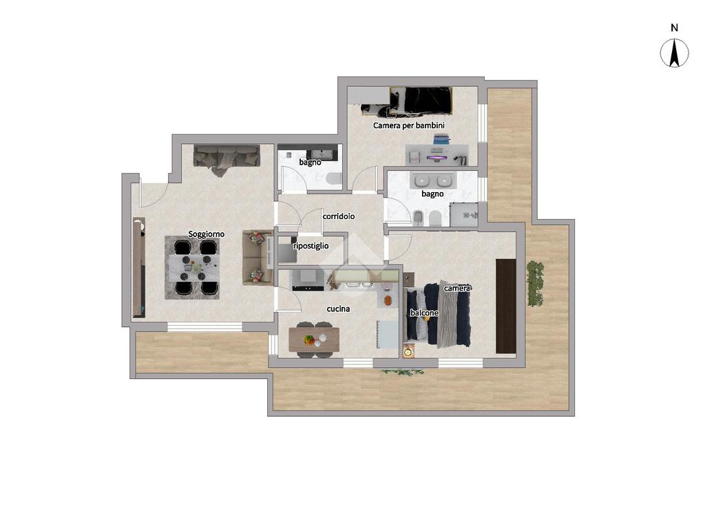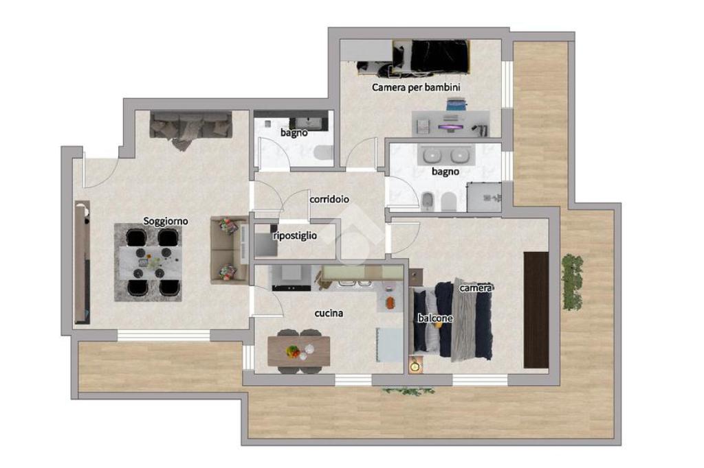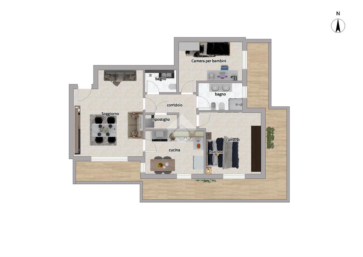 La cucina di comode metrature è abitabile e separata dal soggiorno, anche da qui, potrai accedere al balcone condiviso con il soggiorno. Proseguendo lungo il corridoio, troviamo un pratico bagno-lavanderia e un ripostiglio che aggiungono comodità alla tua quotidianità. Il secondo bagno finestrato è dotato di box doccia.