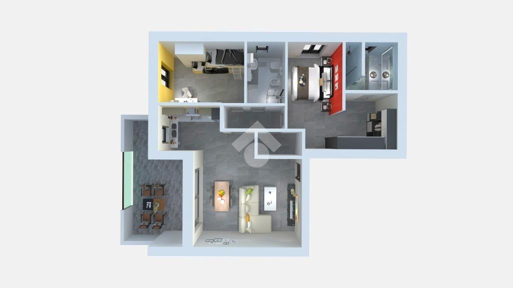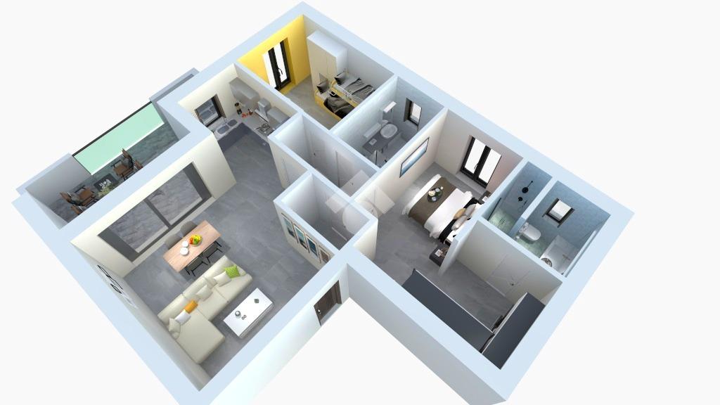 Ingresso direttamente nel soggiorno con cucina a vista ma parzialmente separata dalla zona living ed uscita sul comodo terrazzo dove trascorrere piacevoli momenti di relax. Dal disimpegno si accede alla zona notte composta dalla spaziosa camera matrimoniale dotata di bagno privato e cabina armadio Pass through, dalla cameretta e dal secondo servizio finestrato, oltre ad un comodo ripostiglio.