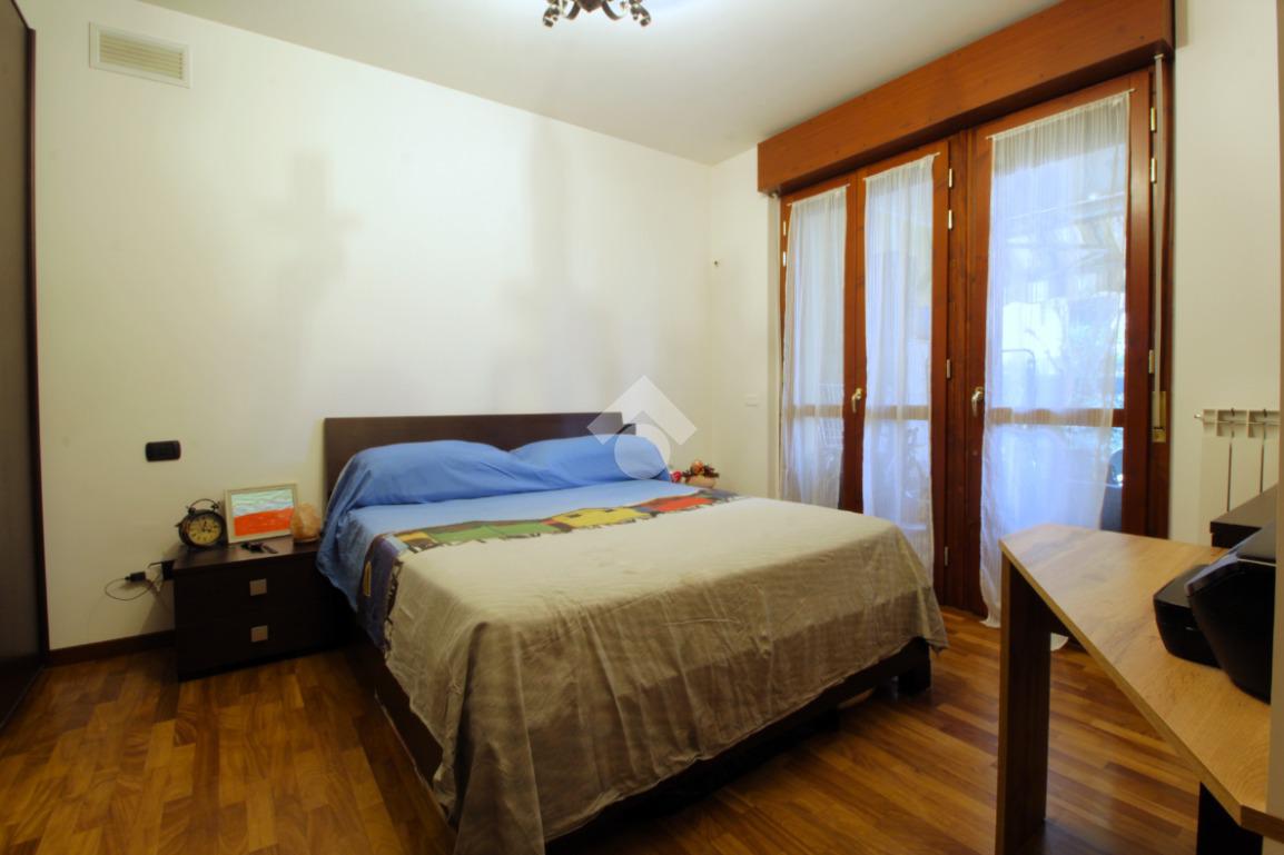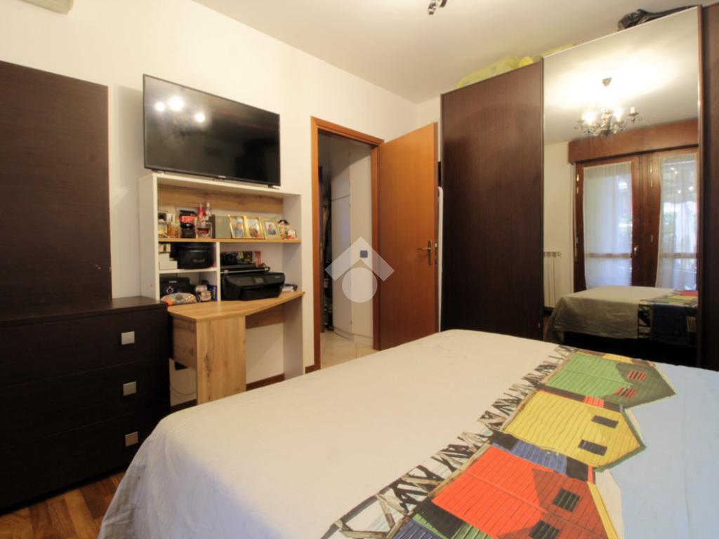 Il disimpegno ci conduce nella zona notte composta dalla luminosa camera matrimoniale rifinita in parquet e dal servizio finestrato dotato di doccia.